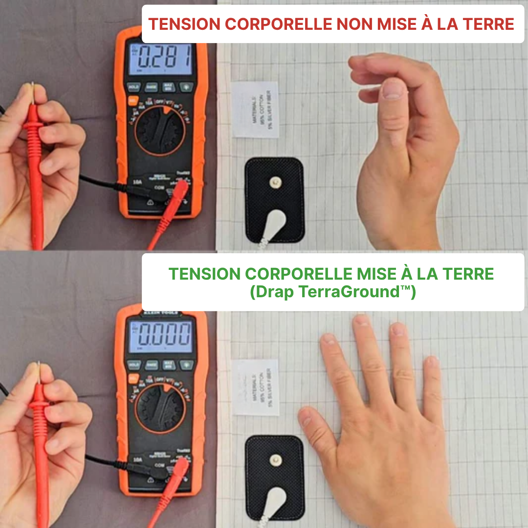 La mise à la terre libère le stress et les tensions, naturellement, ce qui calme automatiquement les nerfs et favorise un sommeil profond et réparateur.