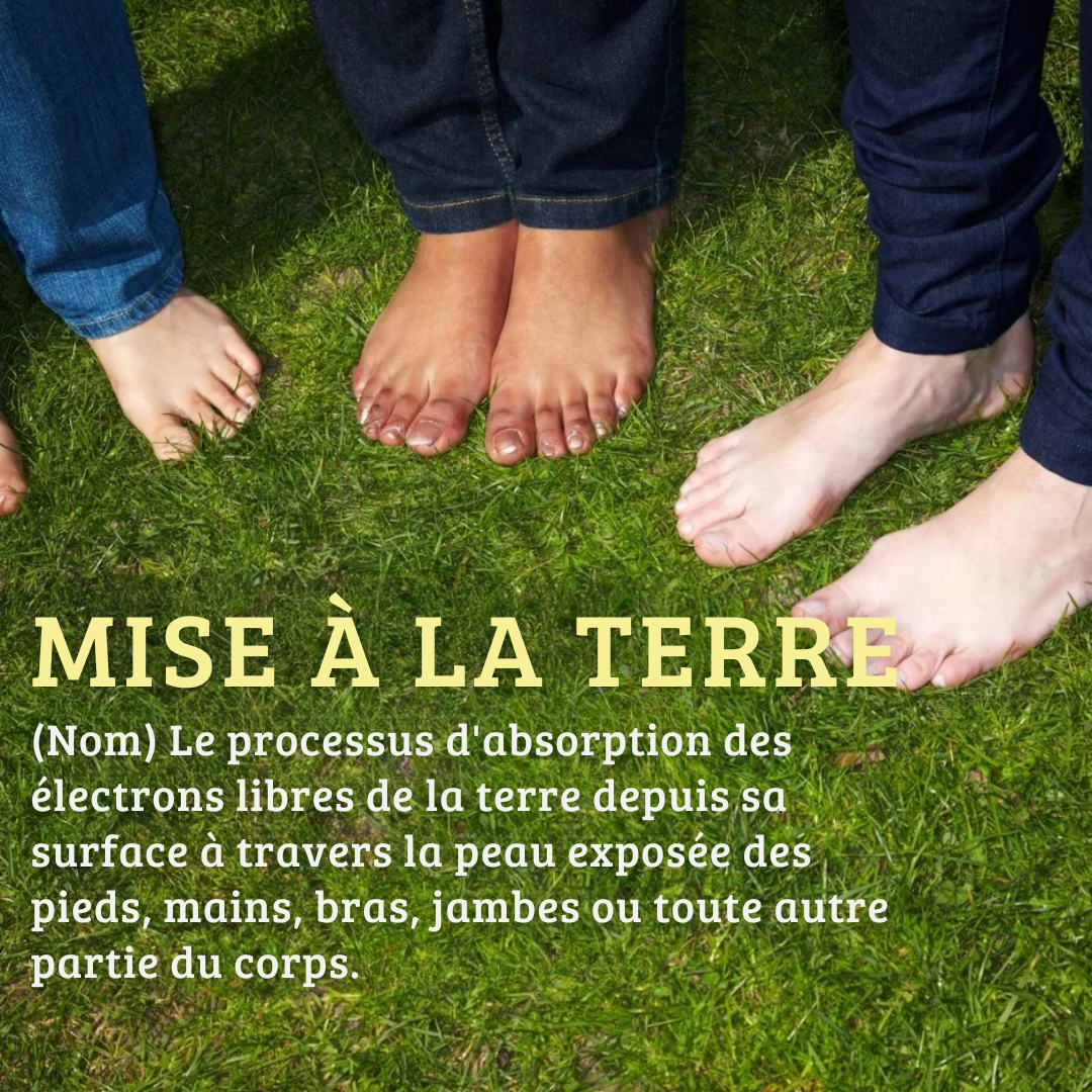 La "mise à la terre" ou "grounding" revient à se brancher sur l'énergie naturelle de la Terre. C'est la pratique de se connecter physiquement avec la Terre, souvent en marchant pieds nus sur l'herbe ou la terre.